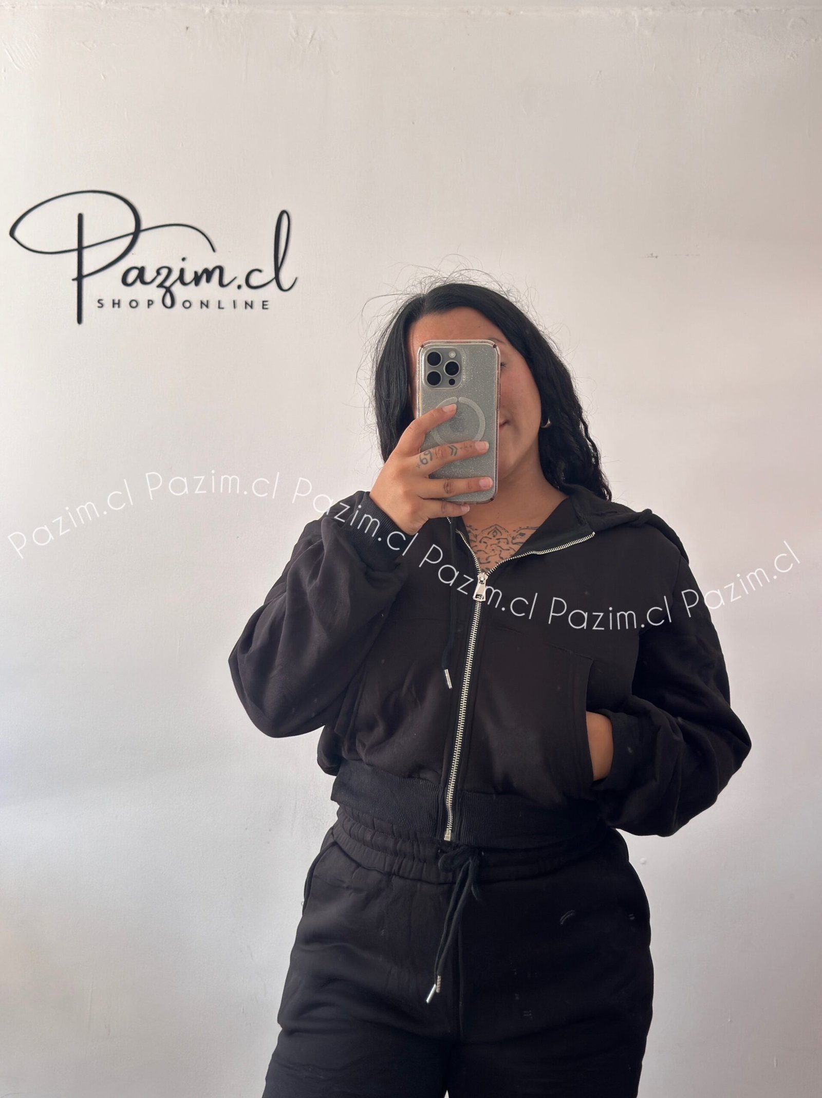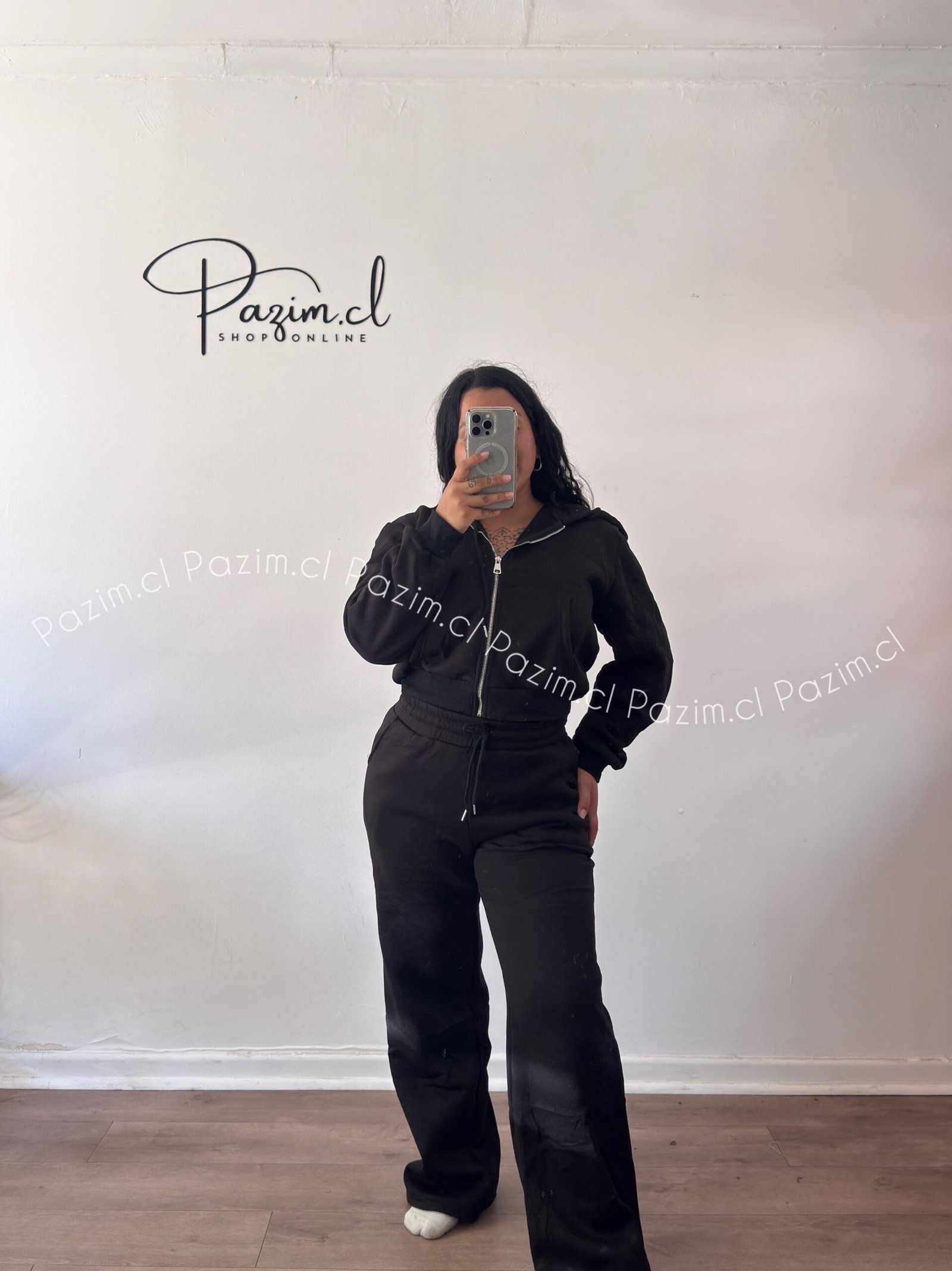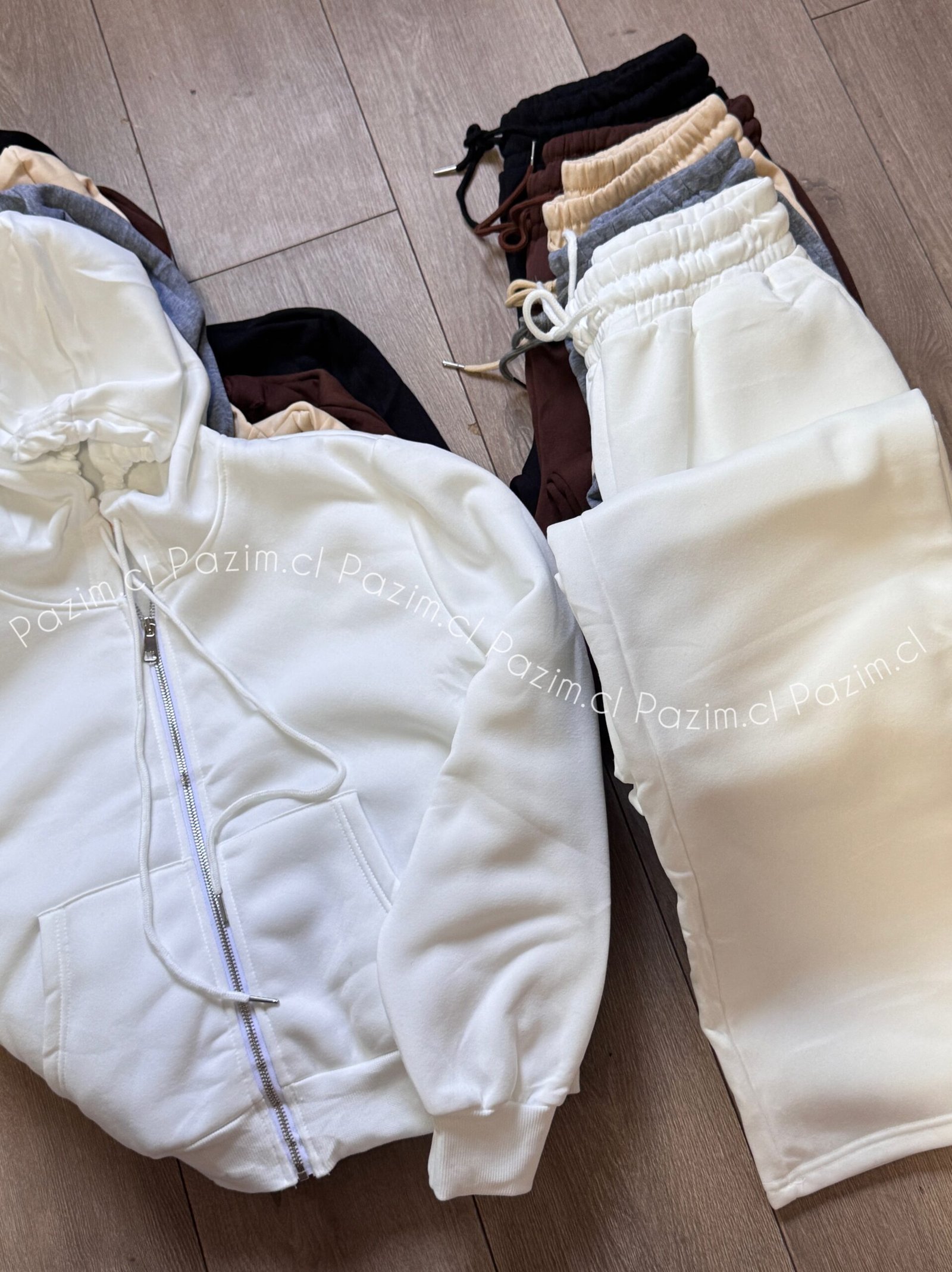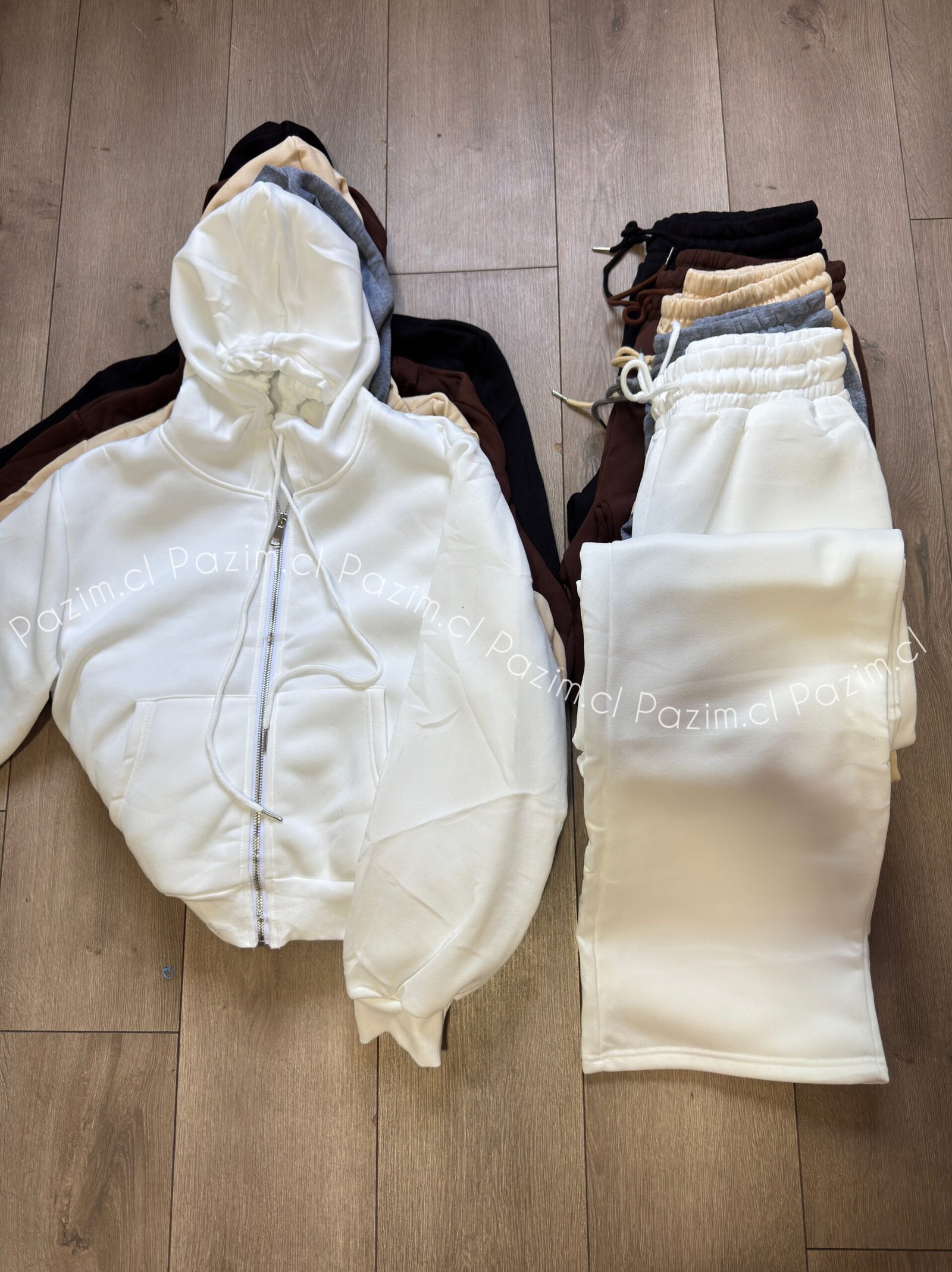 Conjunto de polerón con cierre y pantalón modelo palazo en tela elasticada, cómodo y abrigado. Ideal para un look casual y relajado en días fríos ❄️