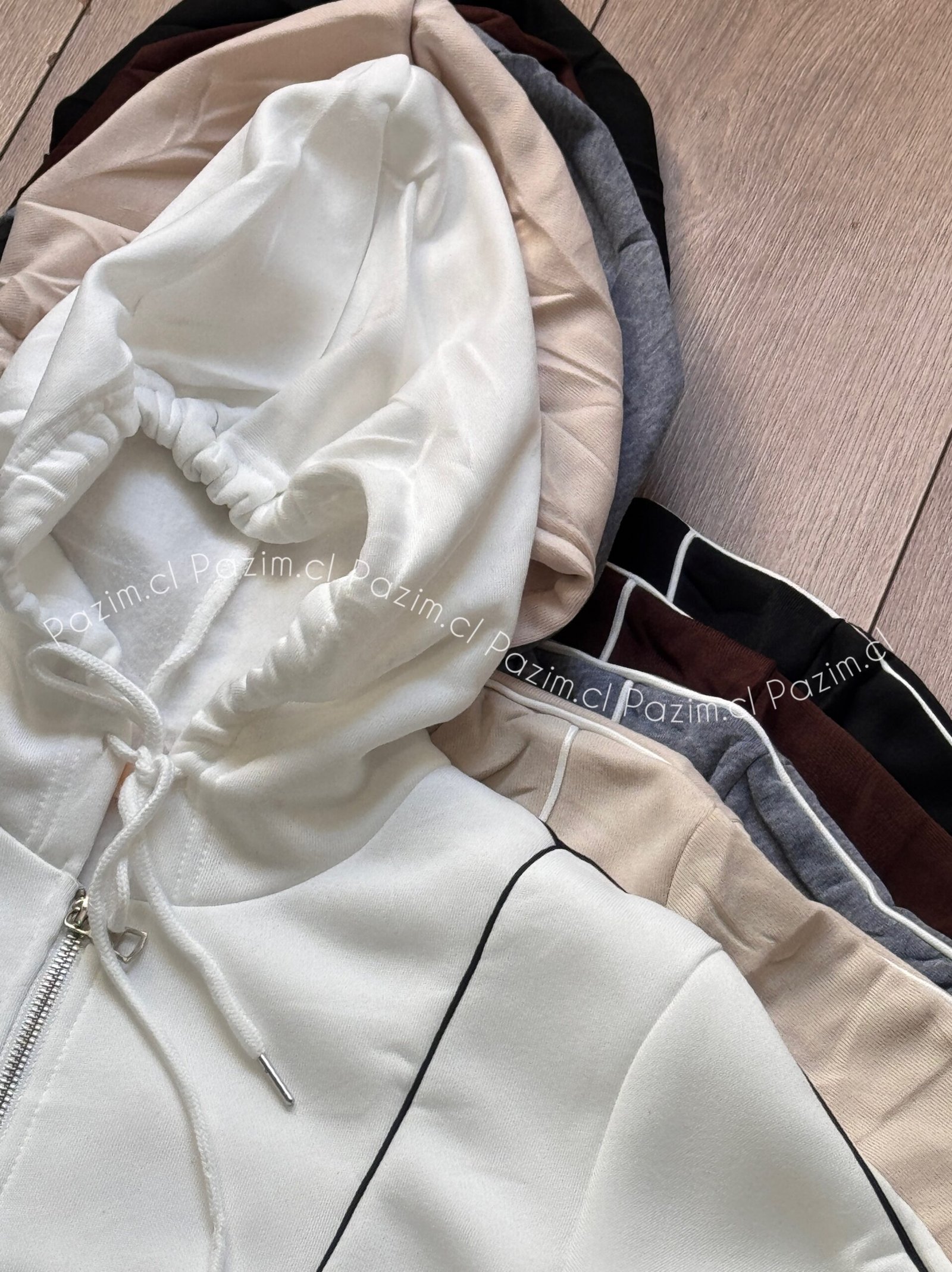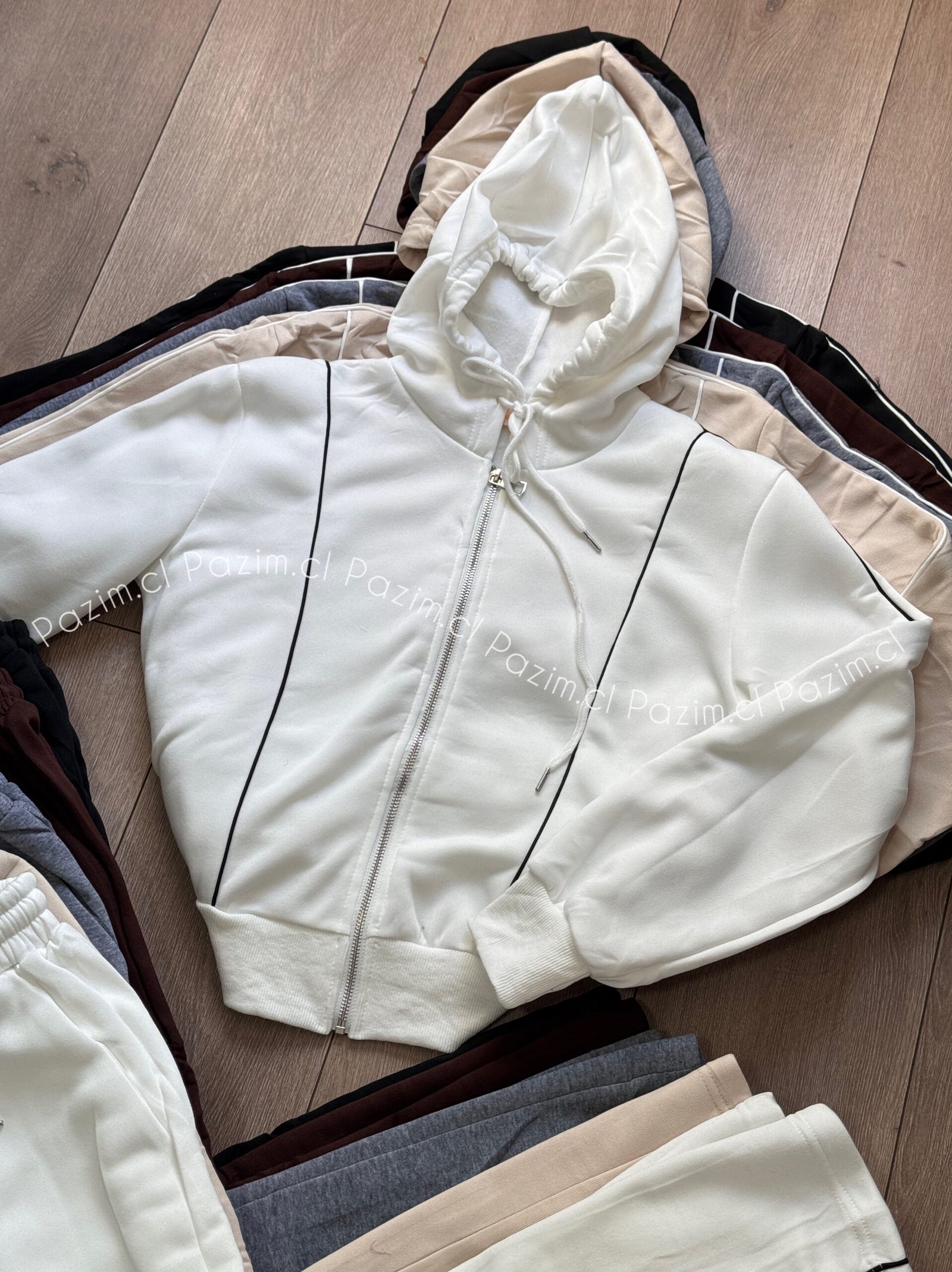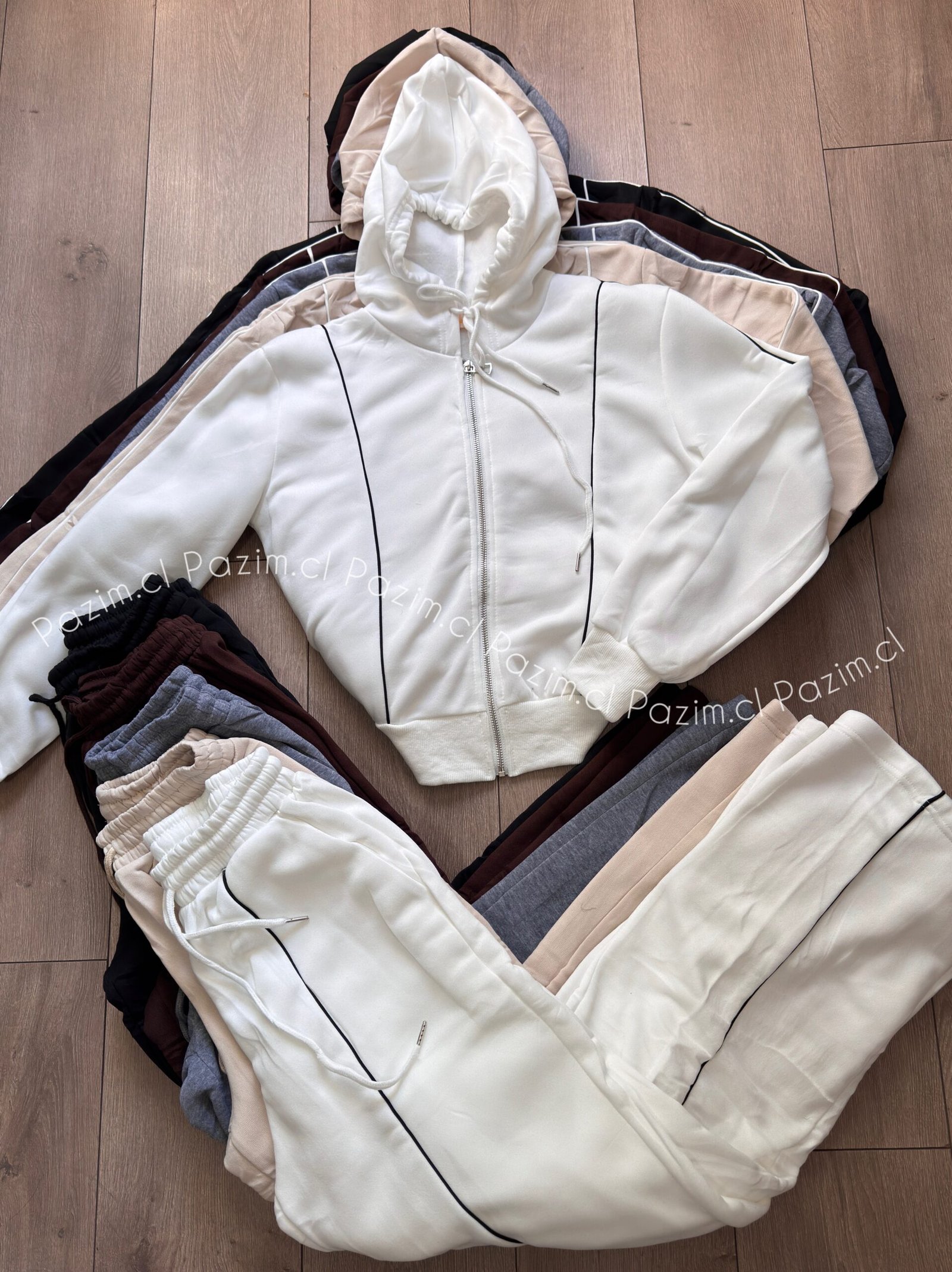 Conjunto de polerón y pantalón en tela elasticada, muy cómodo y perfecto para el día a día. Interior forrado en micropolar, ideal para mantenerte abrigada en los días fríos ❄️