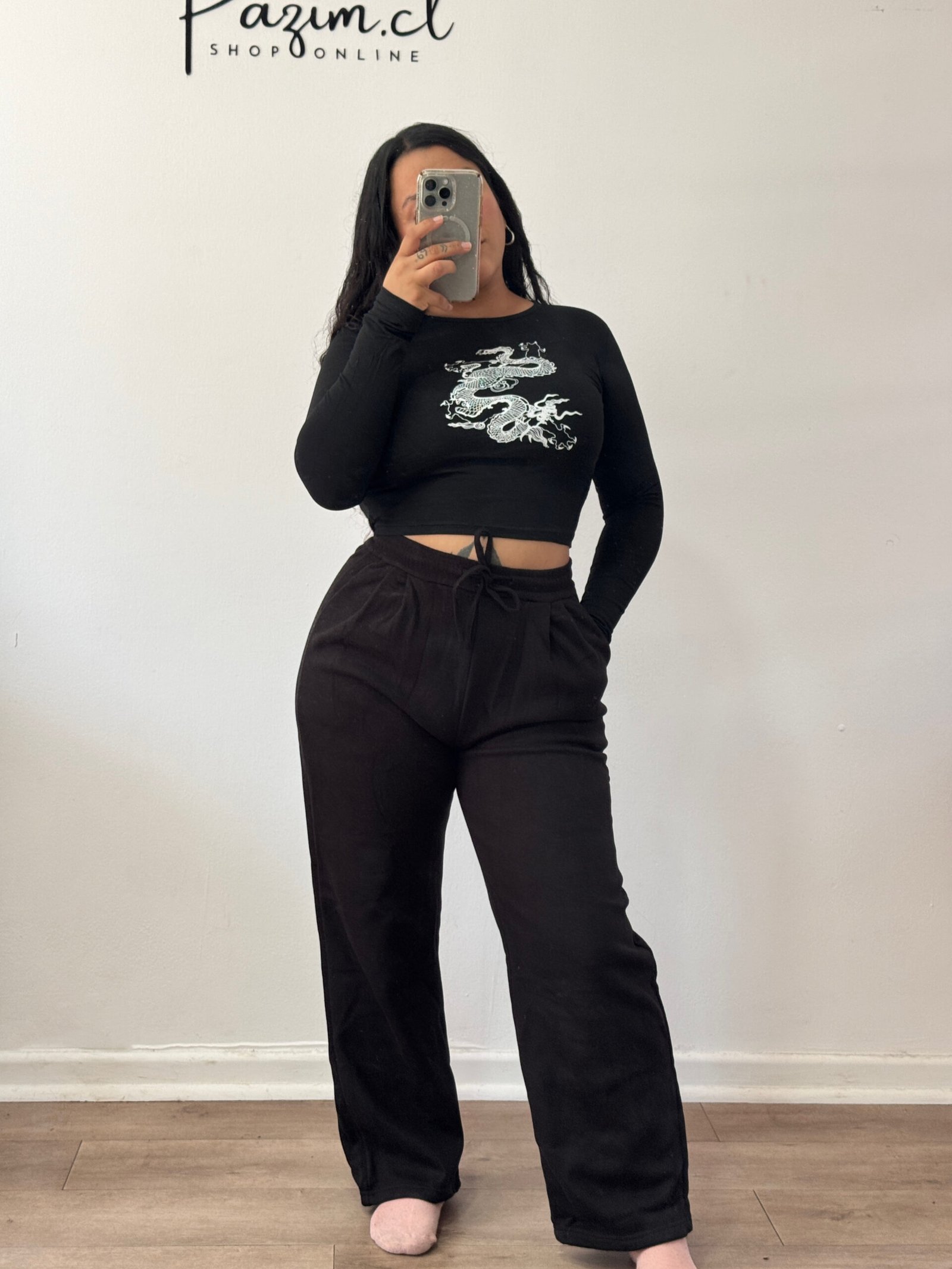Pantalón modelo palazzo, full elasticado y forrado en polar por dentro, ideal para mantenerte abrigada y cómoda esta temporada.